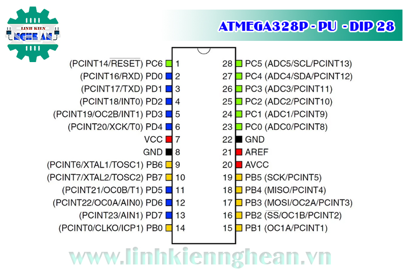 ATmega328P-Pu DIP 28 - Linh Kiện Nghệ An - linhkiennghean.vn