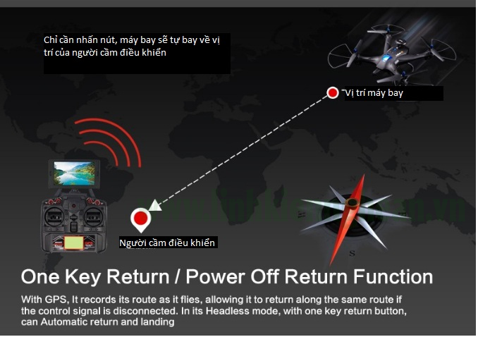 3. Tự động bay về khi bị mất sóng, hay ra lệnh chỉ với một nút nhấn với độ chính xác cao nhất