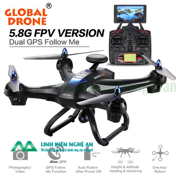 - Flycam global drone x183 là phiên bản có 2 GPS nên có thêm tính năng bay quanh ngươi cầm điều khiển với tính năng này sẽ hạn chế thất lạc khi chúng ta điều khiển nó.